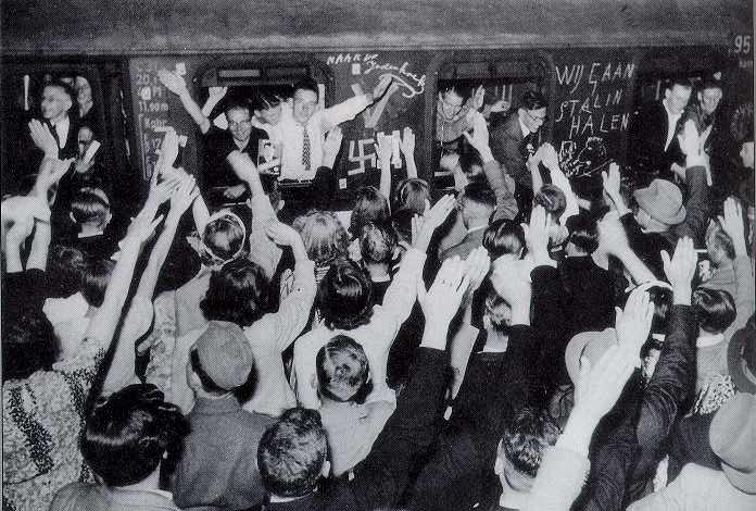 No such train EVER left Serbia. Many nations had such Waffen-SS volunteers but not the Serbs. The Dutch were called by their Nazi allie Hitler to fight for "New World Order". Following their self-proclaimed high moral values and being of Ubermenschen (super-human) stock they are at the same task today.