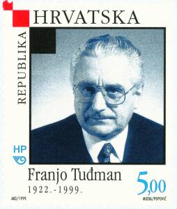 "Sahovnica" is stylized in the top left corner of Tudjman's stamp...